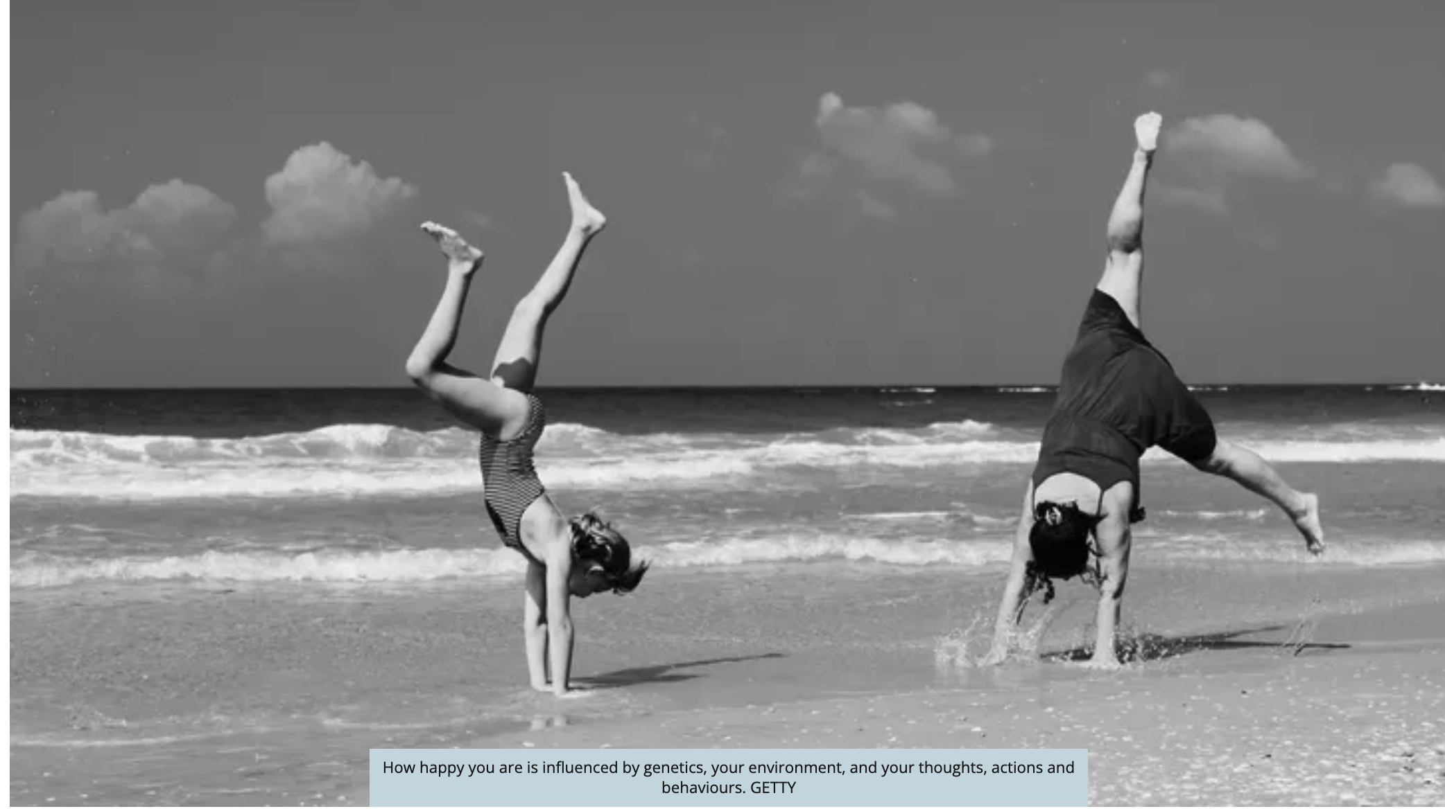So, we’re born with our genetics. Then we look at environments. Think about the pandemic. We can all understand how when our environment changes, if we’re locked in, for example, it can change how we feel. That’s a big factor. And then looking at the third piece, our thoughts, our actions, and our behaviours. That’s the piece that my research focuses on because that’s the piece that’s most amenable to change since we live in our heads every day and we control what we do.